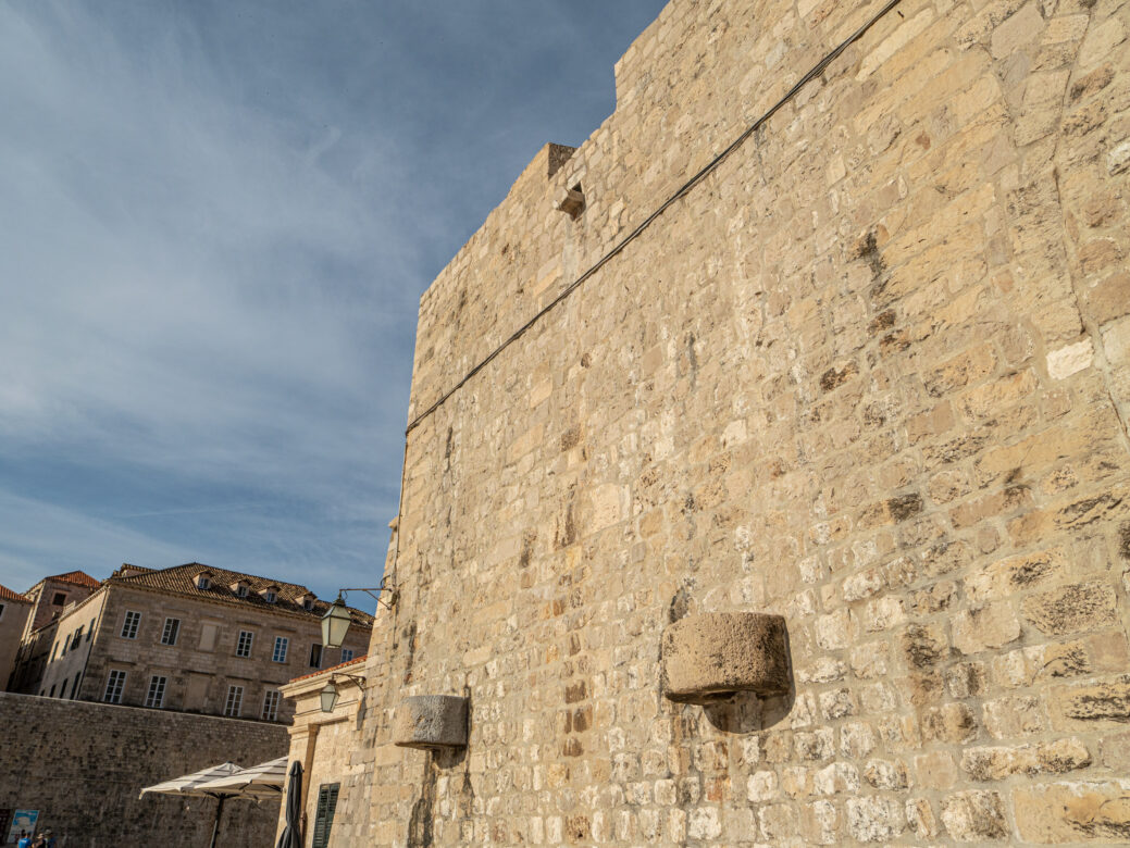 In 1366, it was mentioned in the list of guard posts. It was recorded under the name turris della pena, named after prisons located on the ground floor of the tower. The underground corridor connected it to the Rector’s Palace. In 1420, the tower was raised to the level of other towers, gaining cannon openings. The municipal fontik – a warehouse and grain market noted in the Statute from 1272, was built along the north wall of the tower, connected with it by a gate.