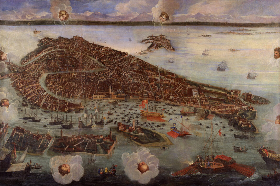 Private interests thus travelled hand in hand with the “public good”. The dense network of Venetian trade routes started here, from St Mark’s Quay, and stretched eastwards from the Mediterranean to the Far East, and northwards as far as Flanders.