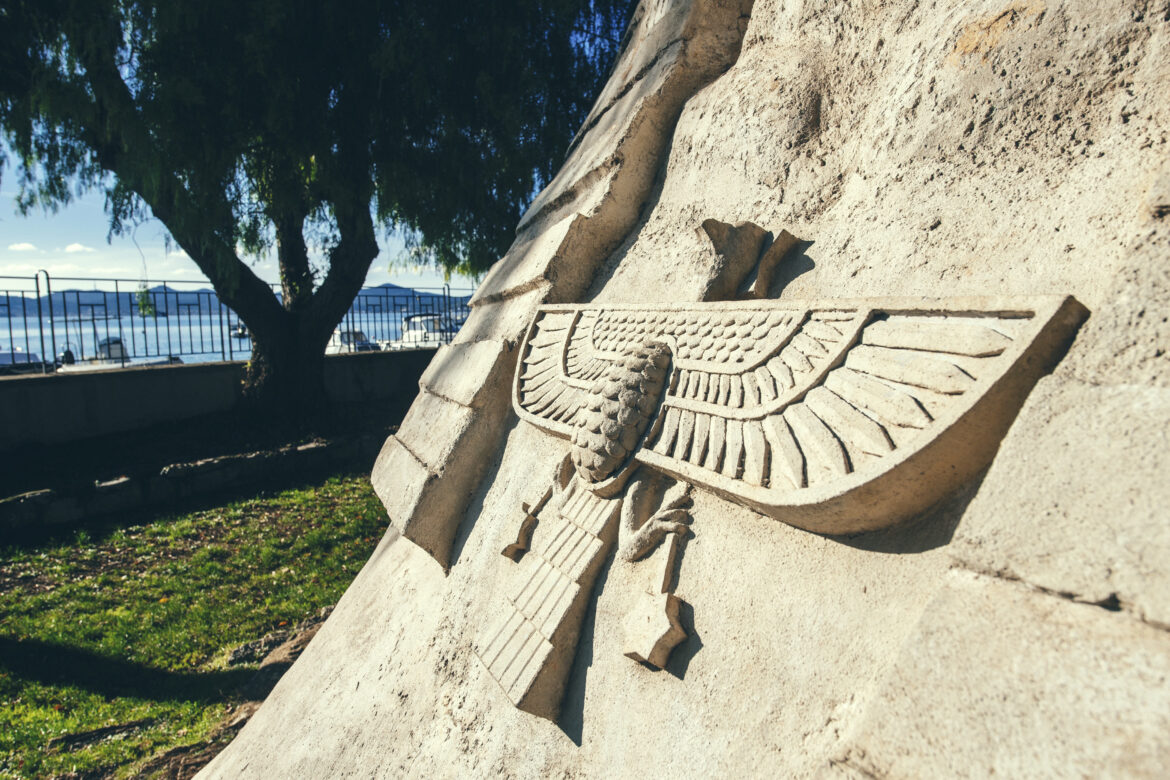 The Sphinx was erected around 1918 by the Zadar painter and conservator Giovanni Smirich, inspired by mythology, symbolism, and oriental motifs that strongly influenced European art at the time. Made of concrete, the Zadar Sphinx is the largest such sculpture in Europe: almost five meters long and about three meters high, with human hands holding a sword, stylized hieroglyphs on its head, and a relief eagle on its chest. It faces southeast, like its Egyptian inspiration, further emphasizing its symbolic connection to ancient civilizations.