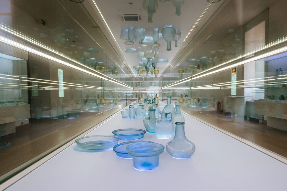 Jedna od posebnosti muzeja jest mogućnost da se kroz izložene predmete poveže čitav lanac antičkog staklarstva: od sirovine, preko trgovine, do gotovog proizvoda. Taj se proces može jasno pratiti na primjeru rimskog brodoloma kod rta Glavata na Mljetu, gdje je u podmorju pronađena velika količina sirovog stakla u grumenima, namijenjenog daljnjoj preradi. Nasuprot tome stoji jedan od najpoznatijih izložaka muzeja – staklena riba, rijetka reljefna boca iz 1. stoljeća, pronađena u grobu u kvartu Relja u Zadru. Zajedno, ti nalazi ilustriraju put stakla od trgovačke robe do sofisticiranog predmeta posebne namjene i značenja.